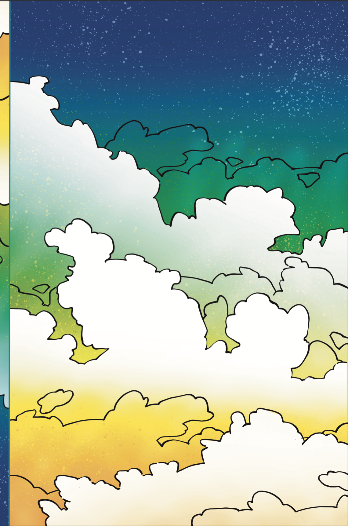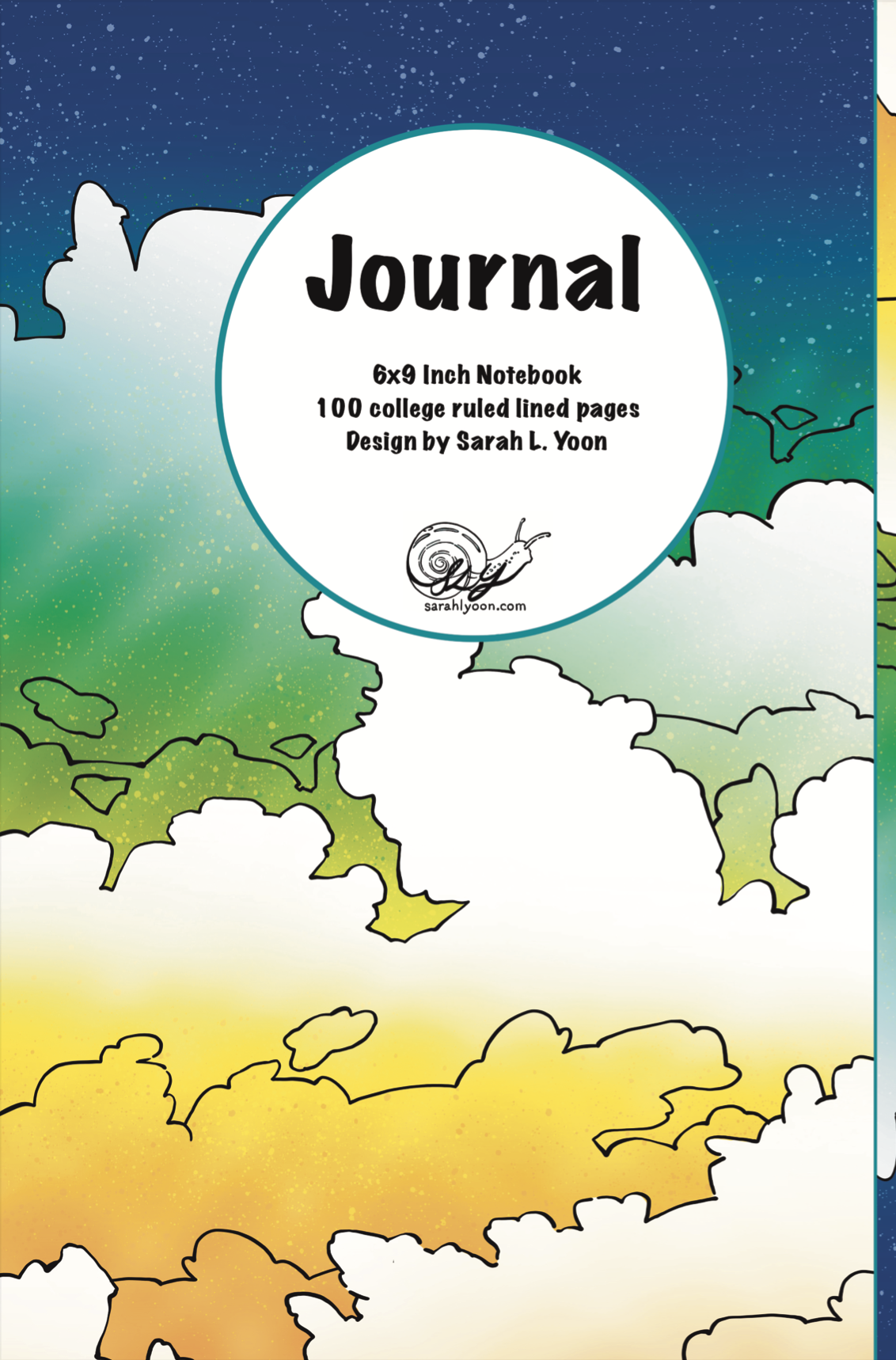 The colorful clouds in blue, green, yellow, and orange reach all the way up to the stars. They’re mystical, magical, and the perfect invitation to get journaling.