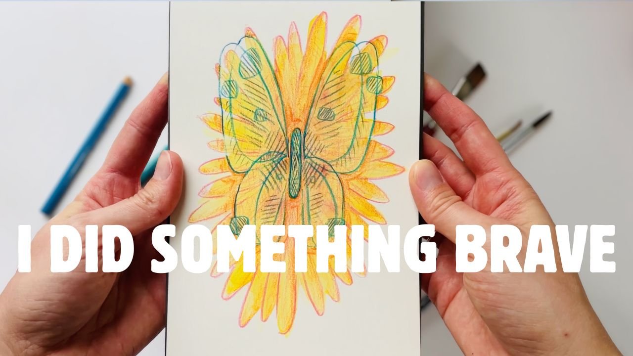 you're braver than you believe | 5 min. therapeutic art | butterfly in watercolor & pencil