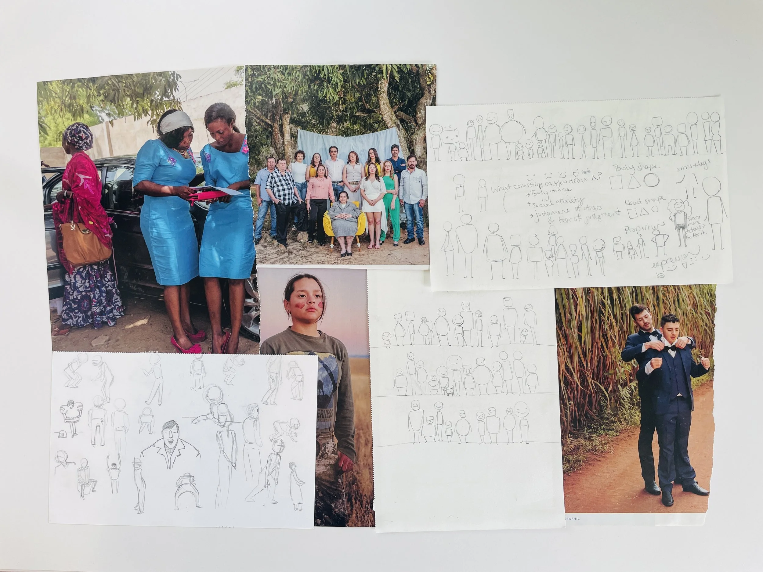 For my first therapeutic art session of 2026, I set up a time for us to refresh our ability to see goodness in others. I created the concept for this session a year or two ago, and finally—after witnessing all the horrors of each news cycle rolling through and sifting through all the anger on social media—I decided it was time. We need to relearn how to see the humanity in others. I covered the table with references: magazine clippings, a few drawings of my own, and Lego figures that my son helped pick out, anything that reinforced the theme while gently removing any potential stress that figure drawing might induce.